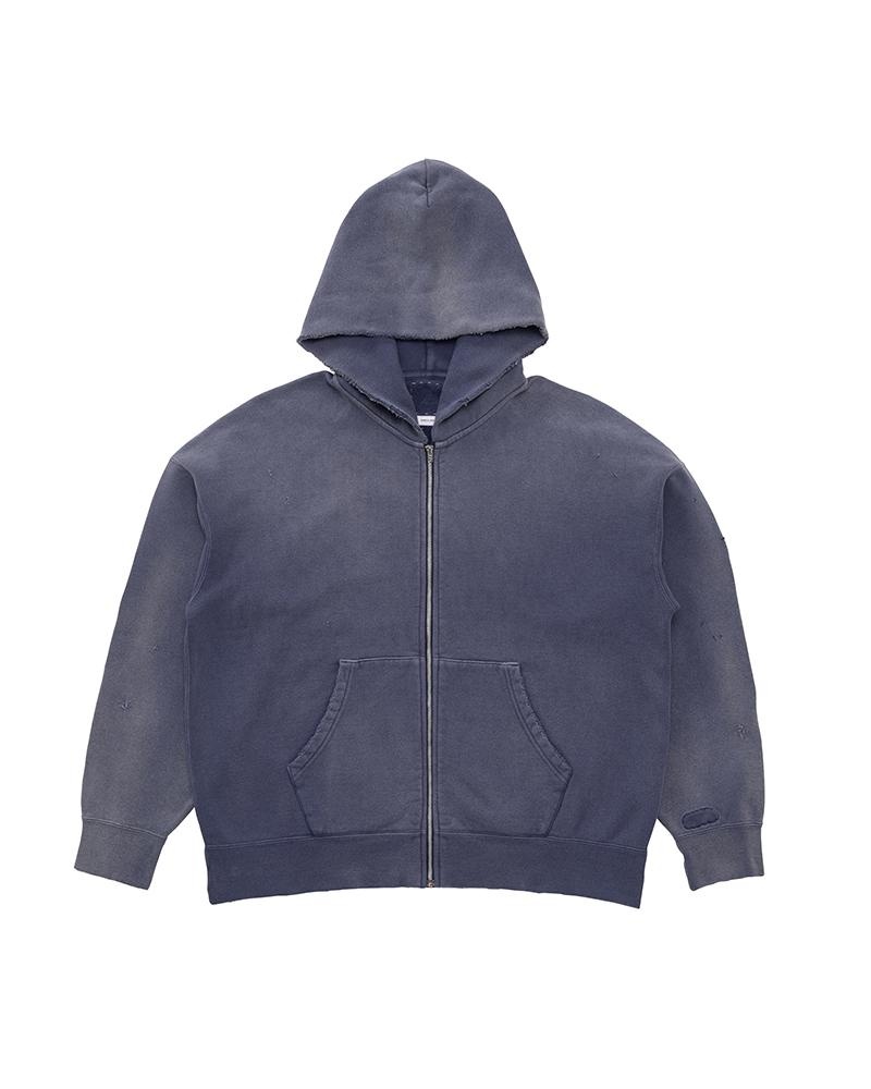JUMBO SB SWEAT HOODIE F.Z. CRASH COLOR: BLACK, NAVY, OFF WHITE SIZE: 1, 2, 3, 4, 5 Full Zip Hoodie Jumbo Silhouette Garment Dyed and Crash Damaged Finish Custom Zip Fastener 100% Cotton UNIT:cm Please be aware that there may be slight variations in the color of the fabric and pattern than shown in the images. There will be slight shrinkage when washing for the first time. SIZE LENGTH CHEST SHOULDER SLEEVE 1 62.5 110 61 47.5 2 64.5 115 63 49 3 66.5 120 65 50.5 4 69 125 67 52 5 71.5 130 69 53.5