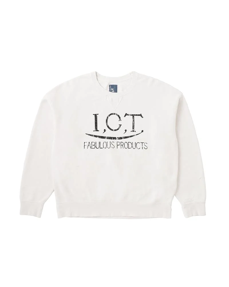JUMBO SB SWEAT L/S CRASH COLOR: LT.BLUE, BEIGE, OFF WHITE SIZE: 1, 2, 3, 4, 5 Crewneck Long Sleeve Sweatshirt made with a french terry material Jumbo Silhouette Garment Dyed and Crash Damaged Finish "I.C.T. FABULOUS PRODUCTS" Print Detail 100% Cotton UNIT:cm : Please be aware that there is a possibility for slight variations in the color appearance and pattern on the fabric that is utilized for this product; each finished garment may be different from the displayed product image. There may also be some shrinkage following the first wash of this product. The Kofu, Bandana, Blanket, African Indigo textile and vintage fabrics used for the name tag and actual product itself vary in color and pattern where no two pieces are alike. Additionally, the degree of deterioration will vary with each fabric depending on its age and historical use so these products should be considered more fragile in comparison to our regularly manufactured products. SIZE LENGTH CHEST SHOULDER SLEEVE 1 62 110 61 49.5 2 64 115 63 51 3 66 120 65 52.5 4 68.5 125 67 54 5 71 130 69 55