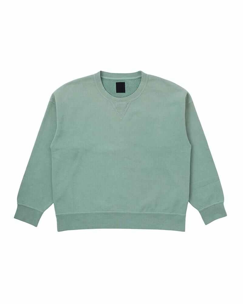 JUMBO SB SWEAT L/S COLOR: DK.INDIGO, NAVY, GREEN SIZE: 1, 2, 3, 4, 5 Crewneck Long Sleeve Sweatshirt Jumbo Silhouette Indigo Garment Die finish (DK.INDIGO) Garment Die (GREEN , NAVY) Damaged Finish 100% COTTON UNIT:cm : Items that are finished with Natural Dye will experience different textural finishes where no two are alike. Also, there may be pieces that have mud left on the finished garment as a result of the treatment. Please be aware that there may also be slight variations in the color of the fabric and pattern than shown in the images. There will be slight shrinkage when washing for the first time. SIZE LENGTH CHEST SHOULDER SLEEVE HEM 1 62 110 61 47.5 49.5 2 64 115 63 49 52 3 66 120 65 50.5 54.5 4 68.5 125 67 52 57 5 71 130 69 53.5 59.5