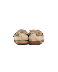 KANA MOC-FOLK W COLOR: BLACK, BROWN, BEIGE SIZE: W6, W7, W8, W9, W10 UPPER : French Sheepskin Fur OUTSOLE : Latex Outsole Non-Replaceable Outsole Hand-Sewn Upper Cork Insole for enhanced cushioning and moisture absorption Leather Midsole The sizing and fit can vary depending on the style of shoe and its design along with the material used for its construction. Please be aware that the natural leather hides have been specially treated to create a unique texture which creates wrinkles and variation in size, expression, and hue where no two pieces are alike. Please be aware that there may be slight variations in color or pattern from the images shown due to the nature of the leather being used.