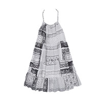 Khapa dress made from original bandanas Damage processed Please Note : Shell : 100% Cotton Liner : 100% Cotton SIZE 0 : Length 34.8 , Bust 42.5 (inch) SIZE 1 : Length 36.2 , Bust 44.1 (inch) Please be aware that the vintage fabric, bandanas, and african indigo fabric used may vary in color and pattern from item to item. With time, these fabrics may also become weaker and less tear-resistant. Also, due to the use of natural dyes, the outward appearance of items may vary slightly from one another. For certain items, mud may be applied for an added effect. Products may shrink slightly when washed.