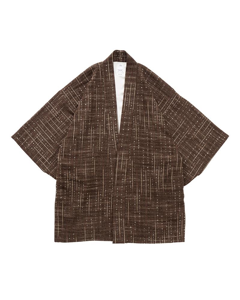 KIMONO ROBE COLOR: BLACK, NAVY SIZE: 00, 0, 1, 2, 3 A Kimono style Robe that is made from an intricately woven Tweed consisting of Silk Thread as well as a Chenille Threads Pressed Finish 72% SILK 25% WOOL 2% POLYESTER 1% NYLON UNIT:cm : Please be aware that there may be slight variations in the color of the fabric and pattern than shown in the images. There will be slight shrinkage when washing for the first time. SIZE LENGTH CHEST SHOULDER SLEEVE 00 82.5 137.9 68 29.5 0 86.5 137.9 68 32.5 1 89 141.9 70 33.5 2 91.5 146.9 72.5 35.2 3 94 151.9 75 37