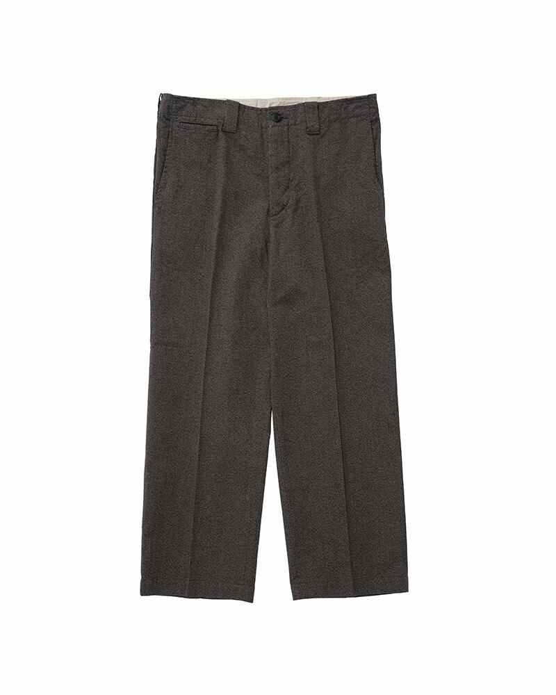 LEAGUERS CHINO COLOR: NAVY, GREY, BEIGE SIZE: 1, 2, 3, 4, 5 Densely woven long staple cotton Chino Pants One Wash Straight Leg silhouette Cropped Length High-rise Custom Water Buffalo buttons Custom Cinch-Back detail 100% COTTON UNIT:cm : Please be aware that there may be slight variations in the color of the fabric and pattern than shown in the images. There will be slight shrinkage when washing for the first time. SIZE LENGTH INSEAM WAIST THIGH WIDTH HEM 1 89.5 59.5 80 29.9 20.9 2 92 61.5 85 31.1 22.1 3 94.5 63.5 90 32.3 23.3 4 97 65.5 95 33.5 24.5 5 99.5 67.5 100 34.7 25.7