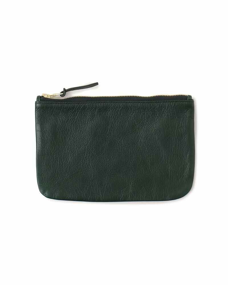 LEATHER TRAVEL POUCH COLOR: BLACK, GREEN, IVORY SIZE: ONE SIZE Italian Vegetable Tanned Horsehide Pouch Swiss riri zip fastener HORSEHIDE UNIT:cm The natural leather hides have been specially treated to create a unique texture which creates wrinkles and variation in size, expression, and hue where no two pieces are alike. SIZE HEIGHT WIDTH ONE SIZE 14 21.5