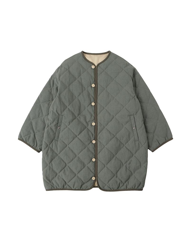 LINER COAT W COLOR: LT.GREEN, KHAKI SIZE: 00, 0, 1, 2, 3 A Quilted Down Coat made from a custom Wool/Linen Twill fabric Pressed Finish White Goose Down Fill Custom Water Buffalo Buttons Custom Snap Buttons Reversible Style 62% WOOL 38% LINEN UNIT:cm : Please be aware that there may also be slight variations in the color of the fabric and pattern than shown in the images. There will be slight shrinkage when washing for the first time. SIZE LENGTH CHEST SHOULDER SLEEVE 00 85.5 131 62.7 45 0 89.5 135 64.2 48 1 92 139 65.7 49.2 2 94.5 144 67.7 51.2 3 97 149 69.7 53.2
