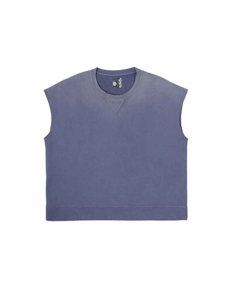 MONDO SWEAT S/L COLOR: DK.INDIGO, NAVY, GREEN SIZE: 1, 2, 3, 4, 5 Sleeveless Crewneck Sweatshirt Indigo Garment Die finish (DK.INDIGO) Garment Dyed (GREEN , NAVY) Damaged Finish 100% COTTON UNIT:cm Items that are finished with Natural Dye will experience different textural finishes where no two are alike. Also, there may be pieces that have mud left on the finished garment as a result of the treatment. Please be aware that there may also be slight variations in the color of the fabric and pattern than shown in the images. There will be slight shrinkage when washing for the first time. SIZE LENGTH CHEST SHOULDER 1 65 124 64 2 67 129 66 3 69 134 68 4 71.5 139 70 5 74 144 72