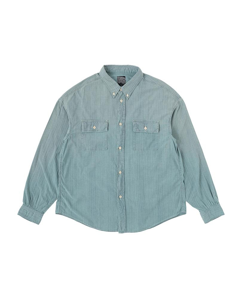 PALMER SHIRT L/S DMGD COLOR: CHARCOAL, GREEN, GREY SIZE: 1, 2, 3, 4, 5 Chambray long sleeve shirt made of extra-long staple cotton One-wash finish Damaged finish Original cow bone buttons Please Note : 100% Cotton SIZE 1 : Length 72.1 , Shoulder 61 , Sleeve length 54.3 , Chest 119 (cm) SIZE 2 : Length 74.6 , Shoulder 62.5 , Sleeve length 55.8 , Chest 123 (cm) SIZE 3 : Length 77.1 , Shoulder 64 , Sleeve length 57.3 , Chest 127 (cm) SIZE 4 : Length 79.6 , Shoulder 66 , Sleeve length 58.8 , Chest 132 (cm) SIZE 5 : Length 82.1 , Shoulder 68 , Sleeve length 60.3 , Chest 137 (cm) Please be aware that the vintage fabric, bandanas, blanket, and african indigo fabric used may vary in color and pattern from item to item. With time, these fabrics may also become weaker and less tear-resistant. Also, due to the use of natural dyes, the outward appearance of items may vary slightly from one another. For certain items, mud may be applied for an added effect. Products may shrink slightly when washed.