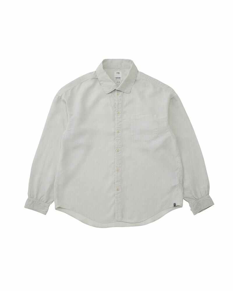 PALMER SHIRT L/S DMGD (LINEN) COLOR: INDIGO, GREY, IVORY SIZE: 1, 2, 3, 4, 5 Densely woven Linen Shirt Garment Dyed Damaged Finish Custom bone buttons Please Note : 100% LINEN SIZE 1 : LENGTH 71 , CHEST 119 , SHOULDER 61 , SLEEVE 54.3 (cm) SIZE 2 : LENGTH 73.5 , CHEST 123 , SHOULDER 62.5 , SLEEVE 55.8 (cm) SIZE 3 : LENGTH 76 , CHEST 127 , SHOULDER 64 , SLEEVE 57.3 (cm) SIZE 4 : LENGTH 78.5 , CHEST 132 , SHOULDER 66 , SLEEVE 58.8 (cm) SIZE 5 : LENGTH 81 , CHEST 137 , SHOULDER 68 , SLEEVE 60.3 (cm) Please be aware that there may also be slight variations in the color of the fabric and pattern than shown in the images. There will be slight shrinkage when washing for the first time.