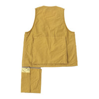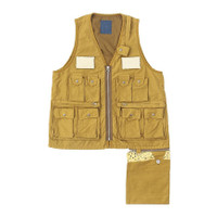 PILAR FISHERMAN VEST COLOR : LT.GREEN, BLUE, MUSTARD SIZE : 1 , 2 , 3 , 4 , 5 Fisherman vest made from nylon-cotton blend fabric Sheepskin detail Swiss riri® zippers Over dyed Damage processed Detail made from Vintage bandanas Please Note : 50% Nylon , 50% Cotton SIZE 1 : Length 24 , Shoulder 12.2 , Chest 41.7 (inch) SIZE 2 : Length 24.8 , Shoulder 12.8 , Chest 43.3 (inch) SIZE 3 : Length 25.6 , Shoulder 13.4 , Chest 44.9 (inch) SIZE 4 : Length 26.3 , Shoulder 14.2 , Chest 46.9 (inch) SIZE 5 : Length 27.1 , Shoulder 15 , Chest 48.8 (inch) Please be aware that the vintage fabric, bandanas, blanket, and african indigo fabric used may vary in color and pattern from item to item. With time, these fabrics may also become weaker and less tear-resistant. Also, due to the use of natural dyes, the outward appearance of items may vary slightly from one another. For certain items, mud may be applied for an added effect. Products may shrink slightly when washed.