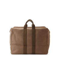 PLURA BAG COLOR: NAVY, OLIVE SIZE: ONE SIZE A Travel Bag made from a custom Wool/Linen double cloth fabric Italian Vegetable Tanned Horsehide combined at the bottom Custom Zip Fastener Custom Tape details 62% WOOL 38% LINEN UNIT:cm : Please be aware that there may be slight variations in color or pattern from the images shown due to the nature of the fabric being used. Additionally the style will experience some shrinkage when washed. SIZE HEIGHT WIDTH GUSSET ONE SIZE 40 49 29