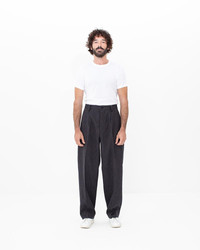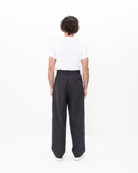 RUSSO PANTS SANTOME COLOR: BLACK, NAVY SIZE: 1, 2, 3, 4, 5 A Pants woven with a multiple thread blend Pressed Finish Custom Water Buffalo Buttons 67% LINEN 18% WOOL 15% COTTON (BLACK) 65% LINEN 18% WOOL 17% COTTON (NAVY) UNIT:cm : Please be aware that there may be slight variations in the color of the fabric and pattern than shown in the images. There will be slight shrinkage when washing for the first time. SIZE LENGTH INSEAM WAIST THIGH WIDTH HEM 1 108 75 79 38 22 2 110.5 77 84 39.2 23.2 3 113 79 89 40.4 24.4 4 115.5 81 94 41.6 25.6 5 118 83 99 42.8 26.8