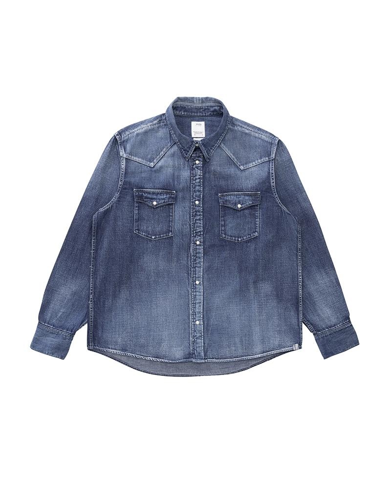 SOCIAL SCULPTURE SHIRT DMGD COLOR: INDIGO, LT.INDIGO SIZE: 1, 2, 3, 4, 5 Custom 8 oz. Denim Shirt Damaged Finish Grey Selvedge American Snap Buttons 100% COTTON UNIT:cm : Please be aware that there may be slight variations in the color of the fabric and pattern than shown in the images. There will be slight shrinkage when washing for the first time. SIZE LENGTH CHEST SHOULDER SLEEVE 1 73.5 117 46 63.5 2 76 122 48 65 3 78.5 127 50 66.5 4 81 132 52 68 5 83.5 137 54 69.5