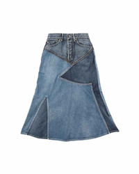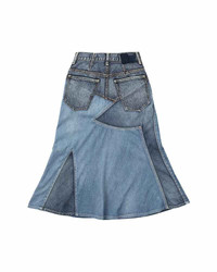 SOCIAL SCULPTURESS P.W. SKIRT DMGD COLOR: ONE COLOR SIZE: 00, 0, 1, 2, 3 A Patchwork Skirt made from six different custom denim fabric Natural Dye Finish Button Fly Red Selvedge Custom Hand-Made Copper Donut Button / Hand Rivets Natural Dyed Buckskin patch 100% COTTON UNIT:cm : Items that are finished with Natural Dye will experience different textural finishes where no two are alike. Also, there may be skirts that have mud left on the finished garment as a result of the treatment. There may be slight variations in the color of the fabric and pattern than shown in the images.There will also be slight shrinkage when washing for the first time. SIZE LENGTH WAIST 00 72.6 70 0 77.6 70 1 79.6 74 2 81.6 78 3 83.6 82