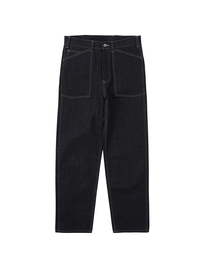 SS CARPENTER PANTS UNWSD N.D. COLOR: ONE COLOR SIZE: 1, 2, 3, 4, 5 Custom 14 oz. Denim Pants Natural Dye finish treatment Unwashed, Unprocessed Indigo Selvedge Original PEERLESS metal buttons Custom cinch-back detail 100% Cotton UNIT:cm : Items that are finished with Natural Dye will experience different textural finishes where no two are alike. Also, there may be pieces that have mud left on the finished garment as a result of the treatment. Please be aware that there may also be slight variations in the color of the fabric and pattern than shown in the images. There will be slight shrinkage when washing for the first time.The vintage fabrics that are used on the tags as well as the garments themselves include Kofu (Vintage Japanese textile), Bandana, Blanket, and African Indigo textile, where no two pieces are alike and each piece will exhibit variations in hue and graphic patterns. Also, the degree of deterioration in the fabrics due to aging is different for each piece; this affects the durability against rips and tears compared to normal products that have not undergone any aging. SIZE LENGTH INSEAM WAIST THIGH WIDTH HEM 1 109 76.6 84 32.9 20.1 2 111.5 78.6 89 34.1 21.3 3 114 80.6 94 35.4 22.6 4 116.5 82.6 99 36.6 23.8 5 119 84.6 104 37.9 25.1