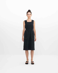 SUN DRESS (N.D.) COLOR: DK.INDIGO, DK.MUD SIZE: 00, 0, 1, 2, 3 A Dress made from a woven Cotton/Silk Indigo Dyed fabric with a resist dye print Natural Indigo Dye (INDIGO) / Mud Dye (MUD) Custom Water Buffalo Buttons Custom Vegetable Ivory Buttons 80% COTTON 20% SILK UNIT:cm : Items that are finished with Natural Dye will experience different textural finishes where no two are alike. Also, there may be skirts that have mud left on the finished garment as a result of the treatment. There may be slight variations in the color of the fabric and pattern than shown in the images.There will also be slight shrinkage when washing for the first time. SIZE LENGTH CHEST SHOULDER 00 100.7 87 35.4 0 105.7 87 35.4 1 108.2 91 36.9 2 110.7 96 38.9 3 113.2 101 40.9