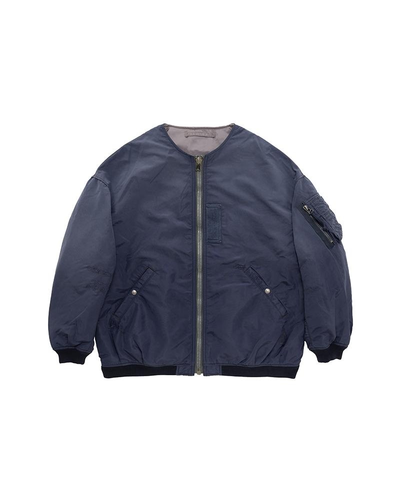 THORSON JKT W COLOR: NAVY, OLIVE SIZE: 00, 0, 1, 2, 3 A Blouson made from a densely woven Nylon Army Twill fabric Damaged Finish Natural Dye Processed Wool Pile Fill Vintage CROWN Zip Fastener Swiss riri Zip Fastener Custom Snap Buttons Custom Military Tape 100% NYLON UNIT:cm Items that are finished with Natural Dye will experience different textural finishes where no two are alike. Also, there may be pieces that have mud left on the finished garment as a result of the treatment. Please be aware that there may also be slight variations in the color of the fabric and pattern than shown in the images. There will be slight shrinkage when washing for the first time. SIZE LENGTH CHEST SHOULDER SLEEVE 00 63.5 122.5 63.3 47 0 65.5 122.5 63.3 49 1 67.5 126.5 64.8 50.5 2 69.5 131.5 66.8 52.5 3 71.5 136.5 68.8 54.5