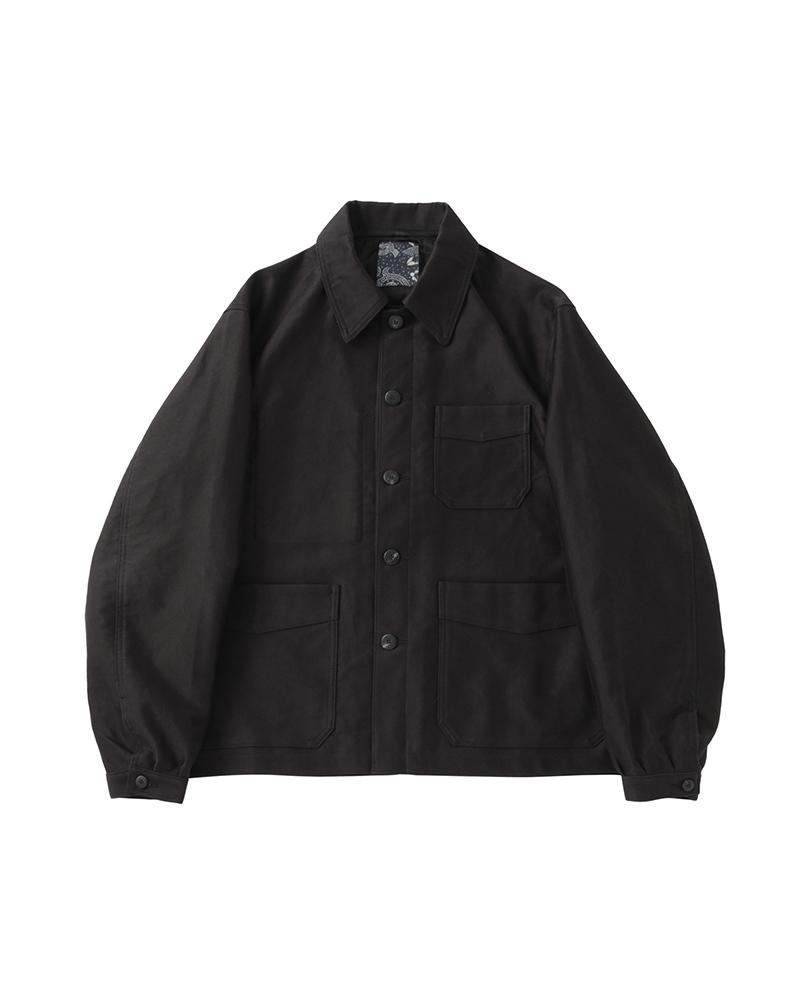 TRAVAIL COVERALL MOLESKIN COLOR: BLACK, NAVY, GREY SIZE: 1, 2, 3, 4, 5 A Coverall Jacket made with a woven extra long staple cotton moleskin material Pressed Finish Custom Water Buffalo Buttons 100% COTTON UNIT:cm : Items that are finished with Natural Dye will experience different textural finishes where no two are alike. Also, there may be pieces that have mud left on the finished garment as a result of the treatment. Please be aware that there may also be slight variations in the color of the fabric and pattern than shown in the images. There will be slight shrinkage when washing for the first time. SIZE LENGTH CHEST SHOULDER SLEEVE 1 69.5 115 50.2 61.9 2 71.5 119 51.7 63.4 3 73.5 123 53.2 64.9 4 75.5 128 55.2 66.4 5 77.5 133 57.2 67.9
