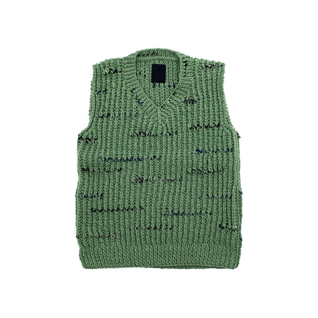 V-NECK VEST (N.D.) COLOR : BEIGE , LT.GREEN , REDSIZE : 1 , 2 , 3 , 4 Hand-knit V-neck vest made from natural dyed homespun threads and vintage Japanese fabric Please Note : 100% WoolSIZE 1 : Length 25.6 , Shoulder 14.4 , Chest 36.2 (inch) SIZE 2 : Length 26.6 , Shoulder 15 , Chest 38.2 (inch) SIZE 3 : Length 27.6 , Shoulder 15.6 , Chest 40.2 (inch) SIZE 4 : Length 28.5 , Shoulder 16.1 , Chest 42.1 (inch) SIZE 5 : Length 29.5 , Shoulder 16.7 , Chest 44.1 (inch) Please be aware that the vintage fabric, bandanas, blanket, and african indigo fabric used may vary in color and pattern from item to item. With time, these fabrics may also become weaker and less tear-resistant. Also, due to the use of natural dyes, the outward appearance of items may vary slightly from one another. For certain items, mud may be applied for an added effect. Products may shrink slightly when washed. V-NECK VEST (N.D.) COLOR : BEIGE , LT.GREEN , RED SIZE : 1 , 2 , 3 , 4 Hand-knit V-neck vest made from natural dyed homespun threads and vintage Japanese fabric Please Note : 100% Wool SIZE 1 : Length 25.6 , Shoulder 14.4 , Chest 36.2 (inch) SIZE 2 : Length 26.6 , Shoulder 15 , Chest 38.2 (inch) SIZE 3 : Length 27.6 , Shoulder 15.6 , Chest 40.2 (inch) SIZE 4 : Length 28.5 , Shoulder 16.1 , Chest 42.1 (inch) SIZE 5 : Length 29.5 , Shoulder 16.7 , Chest 44.1 (inch) Please be aware that the vintage fabric, bandanas, blanket, and african indigo fabric used may vary in color and pattern from item to item. With time, these fabrics may also become weaker and less tear-resistant. Also, due to the use of natural dyes, the outward appearance of items may vary slightly from one another. For certain items, mud may be applied for an added effect. Products may shrink slightly when washed.