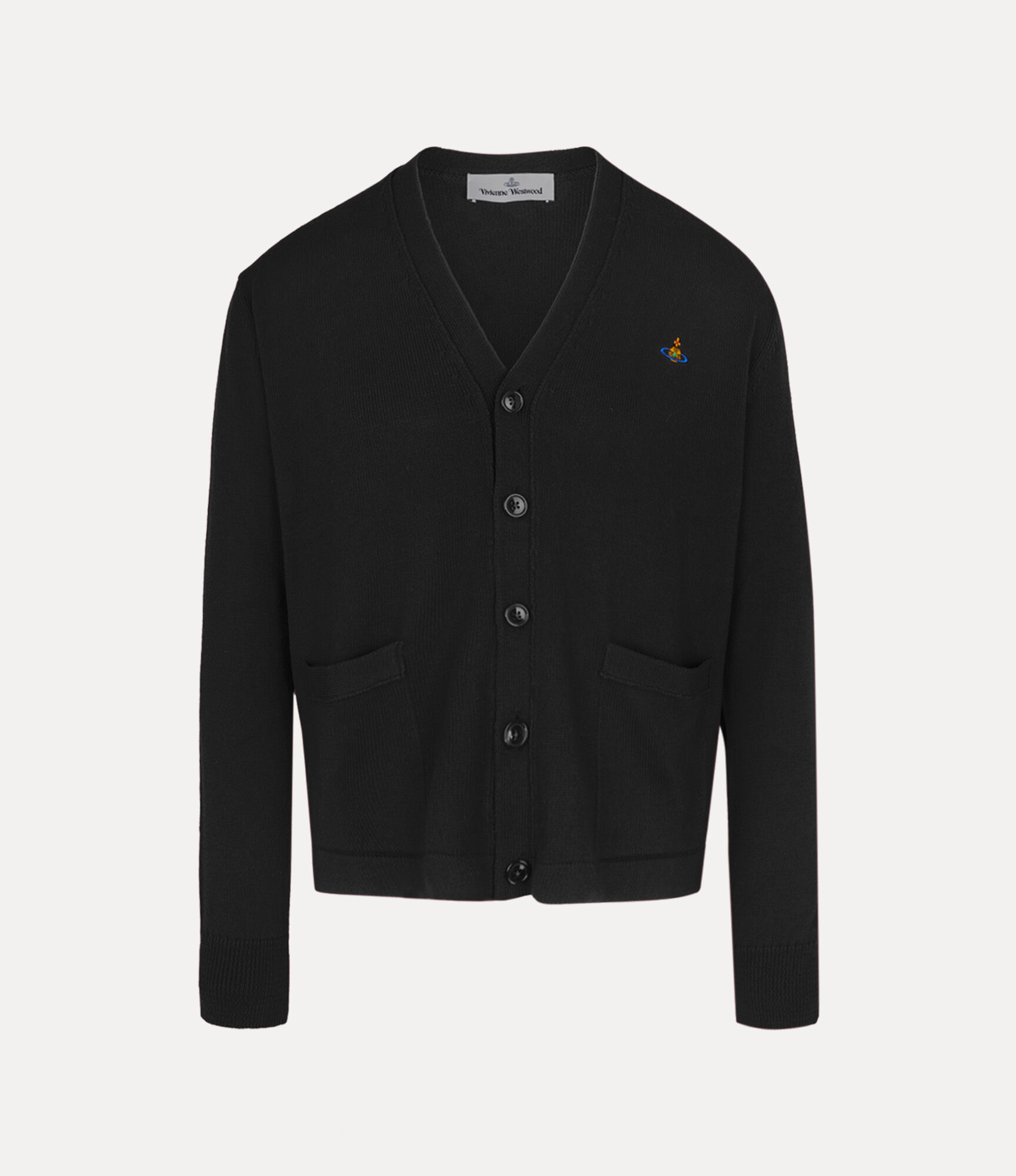 Our archive Alex cardigan has been revamped this season, offered in a soft cotton-cashmere blend. The piece features a button-front design, complete with a V-neck silhouette and an orb detail on the left-hand side of the chest - synonymous with Vivienne's vision of launching tradition into the future. Code: 27010014-Y0021--BLACK - Features two front pockets - Fits true to size - Long sleeves - Straight hem - Roomy body - Woven label at the neckline - Lightweight - Fine-knit finish - Straight fit - Model is 6’0/183cm and is wearing a size M COMPOSITION - 85% Cotton - 15% Cashmere
