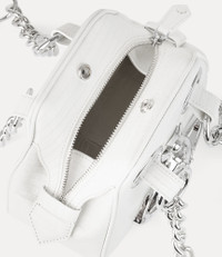 Our original Archive Chain handbag was first seen in the Vivienne Westwood Spring–Summer 1991 'Cut, Slash & Pull' collection. The piece is crafted from mini croc-effect embossed leather and features a raised orb motif on the front panel, along with bondage-inspired hoops and chain detailing. Code: 8053195232321 - Features a polished chain strap - Archival silhouette - Moire lining - Three-dimensional orb motif - Chain shoulder strap - Top-zip fastening - Internal slot pocket - Snap-button fastening - Hoop detail - Length 23cm, height 17cm, depth 11cm - Made in Italy COMPOSITION - Main material: 100% calf leather - Interior lining: 100% viscose - Silver-tone plated brass hardware