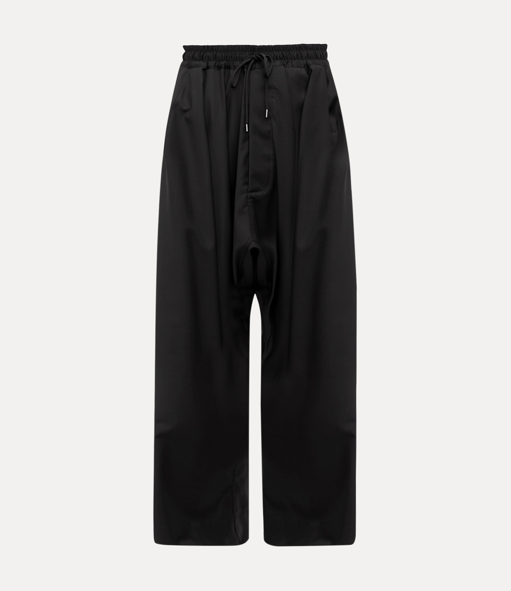 Our Balloon trousers have been reimagined this season in a soft wool finish, cut to a high-rise waist with a fluid drawstring closure. A dropped crotch detail flows into a voluminous wide-leg silhouette, while two flap pockets adorn the back. Code: 2F01001M-W01A2--BLACK - Features an elasticated waistband - Drawstring fastening - Deep side pockets - Woven label detail - Straight hem - Tonal stitching - Model is 6'0/183cm and is wearing a size M - Made in Italy COMPOSITION - 100% Virgin wool