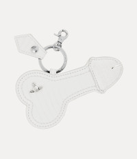 The Bell End keyring draws inspiration from the house’s iconic 'Penis' silhouette, embodying the house's punk and rebellious spirit. Crafted from this season’s mini croc-effect embossed leather, the keyring features a three-dimensional design that seamlessly complements the bell-themed styles of the season. Code: 8053195233908 - Features polished, silver-tone hardware - Croc-effect embossed leather - Polished finish - Engraved split ring - Tonal tab - Made in Italy COMPOSITION - 100% Calf leather - Metal hardware