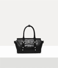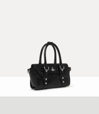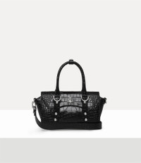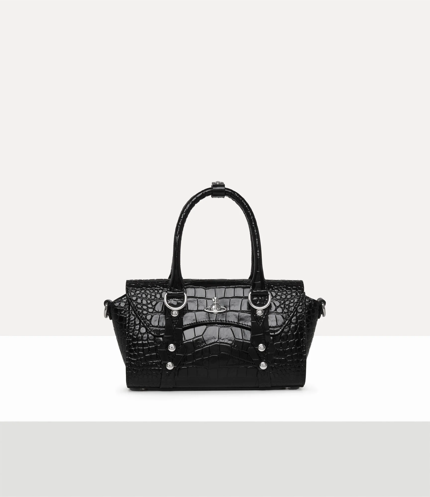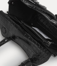 This season, our signature Bettina Mini crossbody bag is crafted in soft leather with an intricate embossed mini croc-effect finish. Inspired by the house’s ‘Betty’ range, the design is detailed with bondage-inspired hardware and a silver-tone D-ring for customisable charms. Code: 8053195381784 - Features a structural design - Polished bas relief orb motif - Flap closure - Compact shape - Zipped internal pocket - Magnetic closure - Removable strap - Length 22cm, height 15cm, depth 8cm - Made in Italy COMPOSITION - Main material: 100% calf leather - Hardware: silver-tone brass - Lining: 65% cotton, 35% polyester microfibre