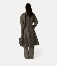 The Breeze coat is tailored from a linen–cotton twill with a soft, flannel-like texture that gives the piece an archival and rustic aesthetic. Cut with a bold asymmetric silhouette, the piece features an off-centre row of buttons that fasten the wrap-front construction, sculpting the waist before falling into a subtle flared hem. Code: 1301002E-W018P--BLACK-BEIGE - Features an asymmetric wrap front - Jacquard lining - Off-centre buttoning - Round, tortoiseshell-effect buttons - Sculpted, oversized shoulders - Nipped, tailored waist - Side seam pockets - Midi-length hem - Curved panel seams to contour the body - Tonal topstitching - Model is 5'11/180 cm and is wearing a size 40 - Made in Italy COMPOSITION - 64% Linen - 36% Wool