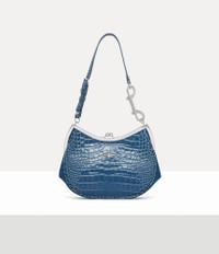 Our Charm Frame Purse features a croc-effect embossed leather profile, designed with a curved silhouette and our classic silver-tone hardware. The piece offers a chain charm detail, reviving signature iconography of the house, complete with symbols of freedom and good fortune. Code: 8053195450190 - Features mixed-metal charms - Orb motif on the front panel - Top-zip closure - Adjustable shoulder strap - Dog clip detail - Compact size - Punk-inspired aesthetic - Interior lining - Length 24cm, height 16cm, depth 5cm - Made in Italy COMPOSITION - Main material: 100% Calf leather - Lining: cotton 'Broken Pinstripe' jacquard - Mixed-metal plated charms