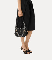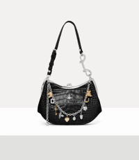 Our Charm Frame Purse features a croc-effect embossed leather profile, designed with a curved silhouette and our classic silver-tone hardware. The piece offers a chain charm detail, reviving signature iconography of the house, complete with symbols of freedom and good fortune. Code: 8053195381418 - Features mixed-metal charms - Orb motif on the front panel - Top-zip closure - Adjustable shoulder strap - Dog clip detail - Compact size - Punk-inspired aesthetic - 'Broken Pinstripe' interior lining - Length 24cm, height 16cm, depth 5cm - Made in Italy COMPOSITION - Main material: 100% Calf leather - Lining: 100% cotton - Mixed-metal plated charms