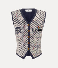 Crafted from a soft cotton-wool blend, our Distressed Tartan vest is patterned with the archival Crosses argyle jacquard, overlaid with a ‘Distressed’ tartan print. Designed with a V-neckline and finished with a row of buttons through the front, the piece is embroidered with an orb motif and the iconic ‘CHAOS’ motif. Code: 1803006Y-Y0044--MULTI - Front button fastening - Contrast ribbed trims - Curved hemline with pointed front - Fil-coupe jacquard front panel - Solid ribbed-knit back - Chest welt pocket - Sleeveless silhouette - Fitted, cropped shape - Unisex design - Made in Italy COMPOSITION - 40% Cotton - 21% Polyamide - 18% Wool - 18% Viscose - 3% Cashmere