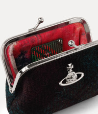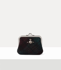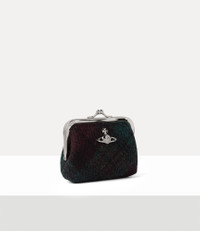 Our Frame Coin Purse is adorned with this season’s dark Harris Tweed check motif, hand-loomed by the inhabitants of the Scottish Outer Hebrides Islands and Lewis. Detailed with an exposed gold-tone frame and finished with a delicate kiss-lock fastening, the design recalls the vintage coin purses of the early 20th century. Code: 8053195334148 - Features a light check motif - Gold-tone hardware - Metal framework - Kiss-lock clasp fastening - Soft silhouette - Compact shape - Embroidered orb motif - Folded side gussets - Structured edges COMPOSITION - Main material: 100% virgin wool, crafted from certified Harris Tweed® - Lining: 100% cotton - Harris Tweed® wool is a legally protected fabric, handwoven in the Outer Hebrides from pure virgin wool that is dyed and spun on the islands. Crafted by skilled artisans, it embodies generations of expertise, quality, and tradition.