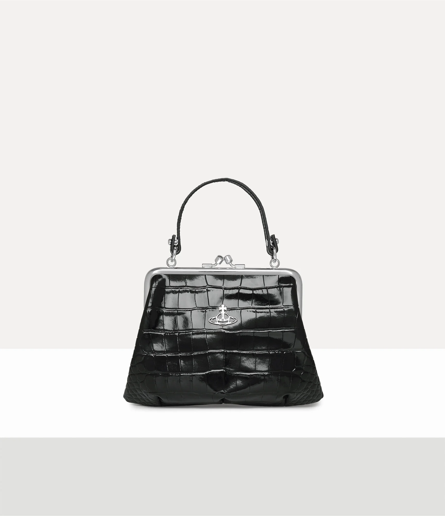 The silhouette of the Granny Frame purse is reminiscent of antique coin purses from the early 20th century, featuring a metal framework with a secure kiss-lock closure. The piece offers croc-effect embossing across the design, complete with our classic line orb motif on the front panel, synonymous with the house's ethos of launching the past into the future. Code: 8053195066605 - Features a polished hardware - Zipped interior pocket - Fully lined - Removable chain strap - Top-handle silhouette - Clasp fastening at the top - Height 17cm, width 22cm, depth 7cm COMPOSITION - 100% Leather