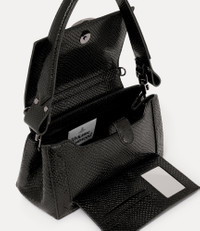 Our signature Hazel Medium handbag is reimagined this season in python-effect embossed leather. The piece offers our polished bas relief orb motif on the magnetic clasp fastening, synonymous with Vivienne's vision of launching tradition into the future. Code: 8053195382804 - Features an additional chain strap - Magnetic stud fastening - Bas relief orb motif - Top-handle silhouette - Three internal card slots - Internal mirror detail - Protective base feet - Tonal stitching - Height 26cm, width 15cm, depth 11.5cm COMPOSITION - Main material: 100% calf leather - Lining: 100% cotton - Hardware: plated brass
