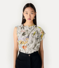 Our signature Hebo top is crafted from a soft cotton-blend and printed with this season’s ‘Wonderland’ artwork, complete with a series of intricate hand-drawn sketch motifs layered with painterly watercolour splashes in vibrant tones. Embroidered with a multi-coloured orb motif, the piece recalls Vivienne’s vision of launching tradition into the future. Code: 1504000A-J00AF--WONDERLAND - Features an embroidered orb motif - Asymmetric sleeves - Slim-fit design - Gathered side detailing - Darting at the back - Tonal stitching - Some stretch - Model is 5'10/178cm and is wearing size S COMPOSITION - 95% Viscose - 5% Elastane