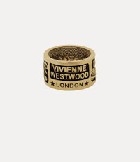 The Lancelot ring, crafted from gold-tone plated recycled silver, is inscribed with signature phrases and motifs inspired by the house's history. The wide statement band is finished with antique-effect detailing, while the inner band features an embossed 'Vivienne Westwood' inscription in the signature lettering. Code: 6402001L-01R002--ANTIQUE-GOLD - Features a polished finish - Gold-tone plating - Inscribed with house motifs - Wide band design - Engraved inner - Textured surface with oxidised accents - Unisex design COMPOSITION - Main material: 100% recycled silver - Gold-tone plating - We plate all our sterling silver products, as this prevents tarnishing and increases durability.