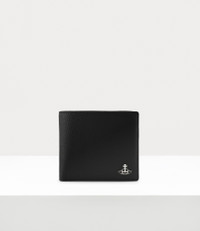 Our Man. Wallet in PU leather showcases a grain-embossed texture with the phrase 'Vivienne Westwood' inscribed on the interior panel. The piece features a snap-fastening coin pocket with three integrated card slots, finished with a dedicated compartment for receipts and notes. Code: 8050889912941 - Features a metal orb stud - Three credit card slots - One note slot - Press-stud coin compartment - Tonal stitching - Height 9.5cm, width 10.5cm, depth 1cm - Made in Italy COMPOSITION - 100% Polyurethane
