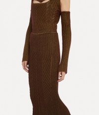 The mid-length Mary skirt is crafted from a silk-mohair blend and features a unique mix of herringbone and rib-knit stitches. The design offers a ribbed waistband and a subtle A-line silhouette, shaped by the knit structure. The multi-colored embroidered orb on the hemline reflects the house's ethos of taking the past into the future. Code: 1802001Z-Y003Z--GOLD - Slim fit design - Mid-length design - The model is 5'11/180cm and wearing a size S - Made in Italy COMPOSITION - 72% Silk - 28% Mohair