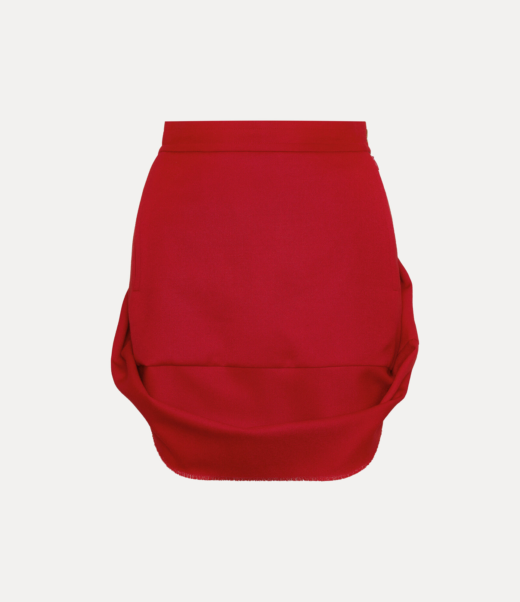 Our Mini Frame skirt is crafted from a soft woollen blend, shaped with a high-rise waistband that falls into a voluminous double-layered silhouette. Defined by its delicately curved front draping and raw-cut hemline, the design remains faithful to Vivienne’s punk-inspired aesthetic. Code: 1K01002F-W01A1--RED - Features contrasting leather straps at the back - Mini-length silhouette - Layered construction - Elasticated waistband - Gold-tone button fastening - Side pockets - Raw-cut hemline - Smooth wool-blend texture - High-rise fit - Made in Italy COMPOSITION - 100% Wool