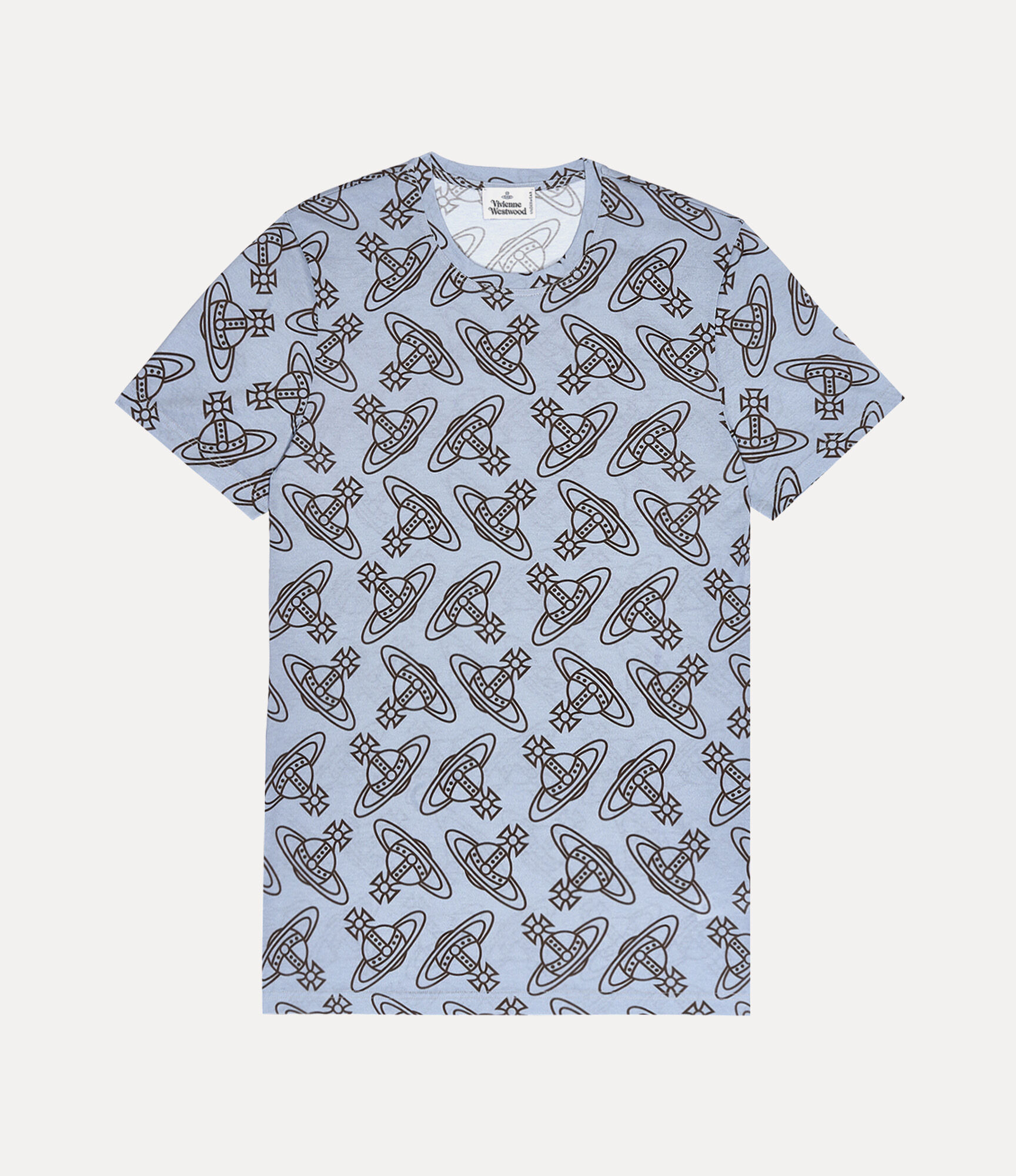The Orb All-over undershirt in cotton jersey with a round neckline features an all-over orb pattern, a motif that Vivienne Westwood first presented in the Harris Tweed Autumn-Winter 1987-88 show. Code: 81060002-J002Z--GREY - Slim-fit - Round neckline - Short-sleeved - Tonal stitching - Straight hem - Repeated orb print - Unlined - Woven brand label COMPOSITION - 100% Cotton