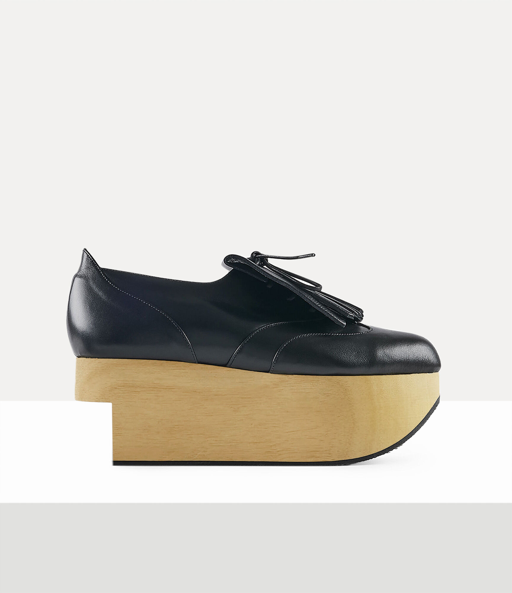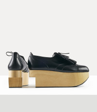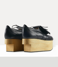 The Rocking Horse Golf shoes were first created for Vivienne's Autumn/Winter 1988 Time Machine collection. Handmade in England, they are finished with a cut-away detailing. Code: 72040002-41671-AM-BLACK - Lace-up fastening - Removable golf fringe - Platform 7.5cm COMPOSITION - 100% Leather