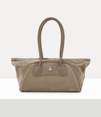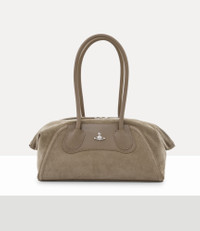 Our Shirley Small holdall draws inspiration from the signature Yasmine silhouette and the laid-back elegance of a picnic blanket. Crafted from suede leather, the piece is lined with our signature 'Broken Pinstripe' - a unique twist on the classic pattern, first introduced in the Gold Label Autumn-Winter 2015 collection. Code: 8053195381272 - Features rounded top handles - Zip-top closure with extended leather zip pull - Thick topstitching - Slightly tapered top profile - Protective metal feet on the base - Draped gussets can expand by opening the popper - Can hold a tablet, book and additional essentials - Small silver-tone orb: 3cm - Length: 33cm, height: 16cm, depth: 10cm - Made in Italy COMPOSITION - Main material: 100% calf leather - Interior lining: 100% cotton - Silver-tone plated brass hardware