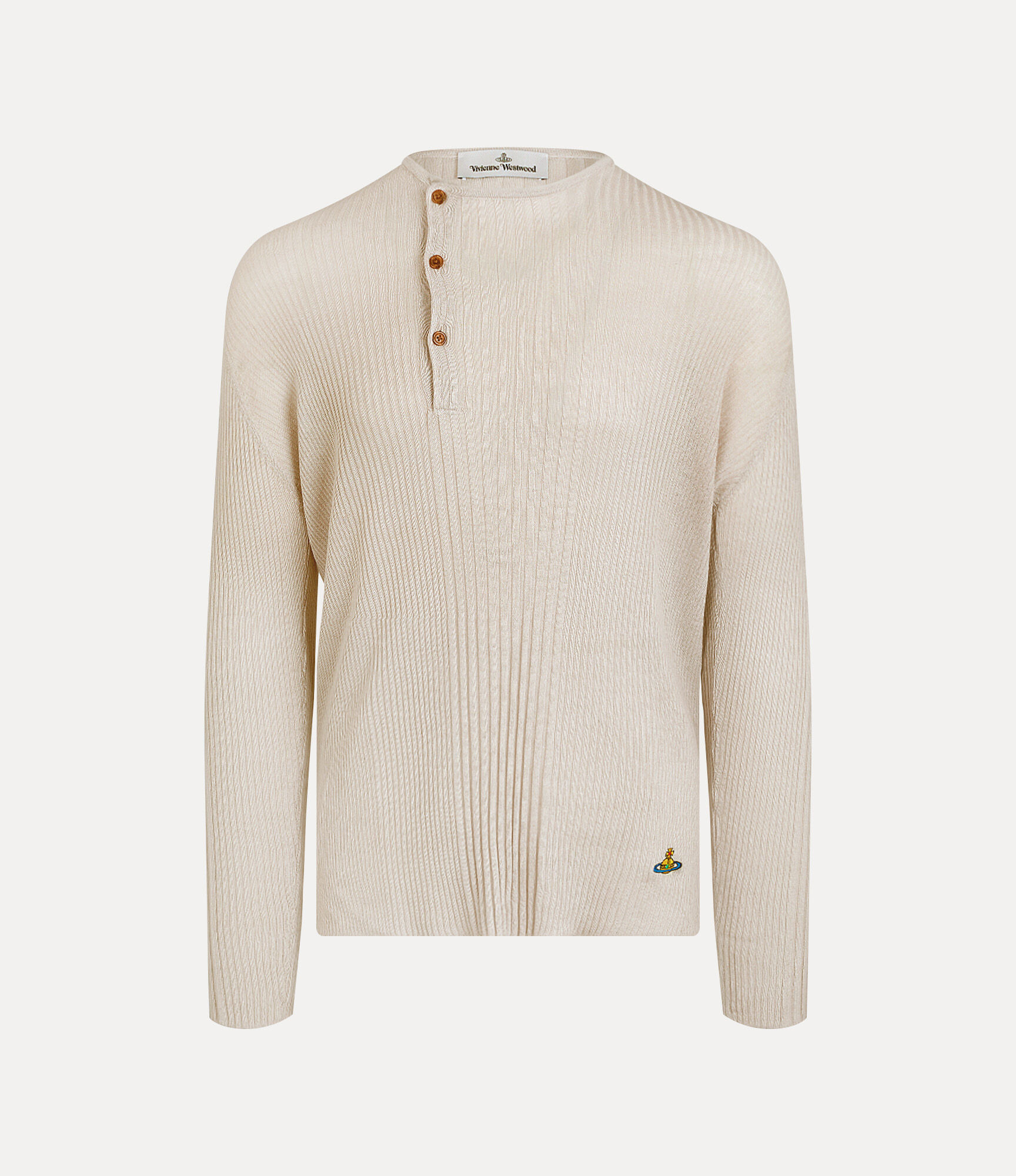 Our Tegan jumper is offered in a soft cotton-cashmere blend, adorned with delicate ribbed detailing across the design. The piece features an off-centre button detail at the front of the design, complete with tightly ribbed sleeves that enhance the fit and contrast with the looser body. Code: 2701002N-Y003M--DUSTY-WHITE - Features asymmetric ribbing - Fits true to size, please take your normal size - Henley neckline with button detail - Long sleeves - Classic orb embroidery at the hemline - Slightly dropped shoulders - Raw, unfinished hem - Relaxed, boxy shape - High-low hem effect - Made in Italy COMPOSITION - 85% Cotton - 15% Cashmere