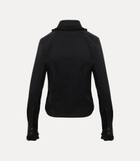 The Toulouse Frill shirt revives our archival cut-out heart tailoring at the neckline - synonymous with Vivienne's affection for both humanity and the planet. The piece is finished with our signature orb embroidery at the chest, complete with a delicately rounded collar, framed with gathered frill detailing. Code: 1501006C-W018M--BLACK - Features a classic button placket - Tailored fit - Long sleeves - Frilled cuffs - Orb embroidery - Curved hemline - Back yoke panel - Extended collar stand - Darting detailing - Tonal stitching COMPOSITION - 72% Organic cotton - 24% Polyamide - 4% Elastane