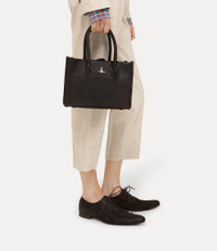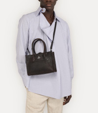The Troy Small tote crossbody in distressed leather is defined by a sleek, rectangular silhouette and distinctive rounded handles, reminiscent of the house’s signature Shirley bag. Featuring a removable strap, the design is finished with the heritage silver-toned orb motif, recalling Vivienne’s vision of launching tradition into the future. Code: 8053195381555 - Features a concealed magnetic fastening - Sculpted top handles - Thick topstitching - Plated metal orb motif - Zip-fastening interior pocket - 'Broken Pinstripe' lining - Removable strap - Spacious interior that can hold a phone and wallet - Length: 24cm, height: 18cm, depth: 10cm - Made in Italy COMPOSITION - 100% Lamb leather