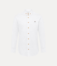 This season's Two Button Krall shirt is inspired by an archive design, featuring the house's distinctive two-button collar. The piece receives our signature orb embroidery at the front of the design, representing Vivienne's vision of launching tradition into the future. Code: 24010005-W009Q--WHITE - Features long sleeves - Front-button fastening - Slightly curved hemline - Single-button barrel cuffs - Fitted design - Fits true to size - Model is 6'1.5/187cm and wearing a size 48 COMPOSITION - 100% Organic cotton