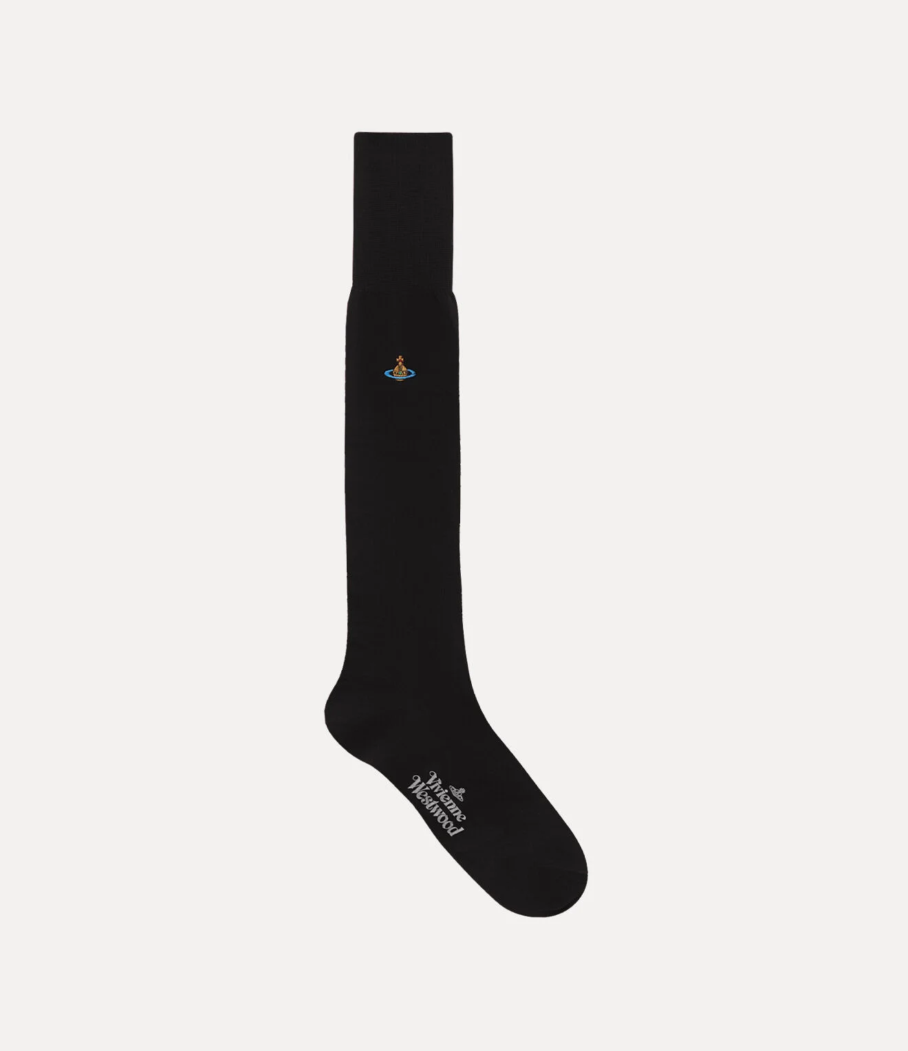 Our Uni Colour Plain Knee High socks feature a soft cotton finish with a knee-length silhouette. The piece receives our multicoloured orb embroidery, complete with the signature Vivienne Westwood lettering motif at the sole - synonymous with the ethos of launching the past into the future. Code: 81040002-K001D--BLACK - Features a pull-on design - Knee-high fit - ’Vivienne Westwood’ printed on sole - Embroidered orb motif - Round toe - Tonal stitching - Ribbed trims - Added stretch for comfort - Made in Italy COMPOSITION - 100% Cotton