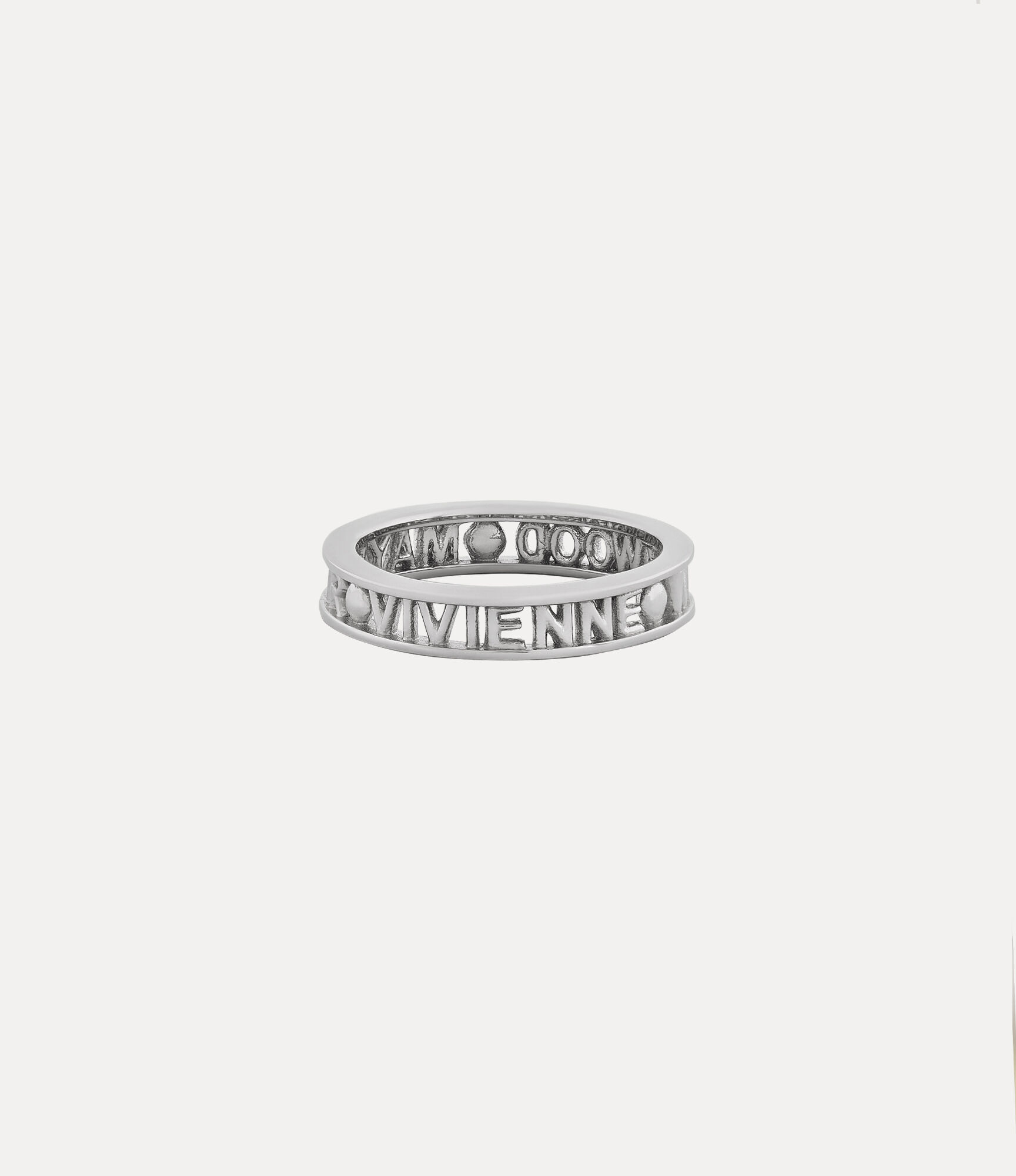 Carved with the graphic Vivienne Westwood Mayfair logo, the Westminster ring features a minimalistic, sleek design and a polished finish. Code: 64040016-01W004-FJ-Rhodium-925- - Silver-tone plating - 'Vivienne Westwood Mayfair' carving - Thin-band design - Weight: 25.5g - Measurements: band width 0.4cm COMPOSITION - 100% Recycled silver