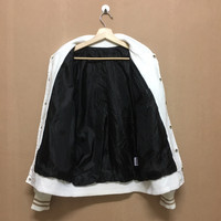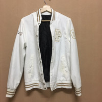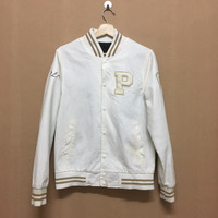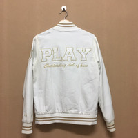 PLAY Varsity Jacket white colour with patch 🙏Pleas read all the description before buying. This is pre-owned/used authentic collections.💠A11 Tag : refer picture Armpit to armpit : 20 "inches Length from top to bottom : 25.5 "inches Sleeve length : 25.5 "inches Shoulder to shoulder : 16.5 "inches Welcome To ryustella3815 If the post is still up for the item you’re after it’s still available! 🤝 Any flaws such as in cracking on the print, rips, holes or stains will always be shown in the photos Shipping✈️to our WORLDWIDE 🌎customers. Normal shipping : 14-21 working days to deliver. Express Shipping : 7-10 working days to deliver. Will be shipped same day or day after purchase Payment method via PayPal only. No cancellation allowed after made the payment. No refund/return allowed. All purchase is final. Hit me for any question🙋🏻♂️🙋🏻 Thank you for shopping with us👌 Buy with confidence! All items are authentic.