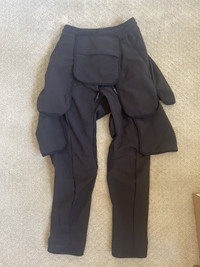 Size xs-s fits a 28-30 waist Insane pair of cargos from the experimental Dutch brand utilizing their proprietary knit fabric alongside goretex infinium and four removable pockets alongside the four standard ones. Straight leg fit and draw cord waist